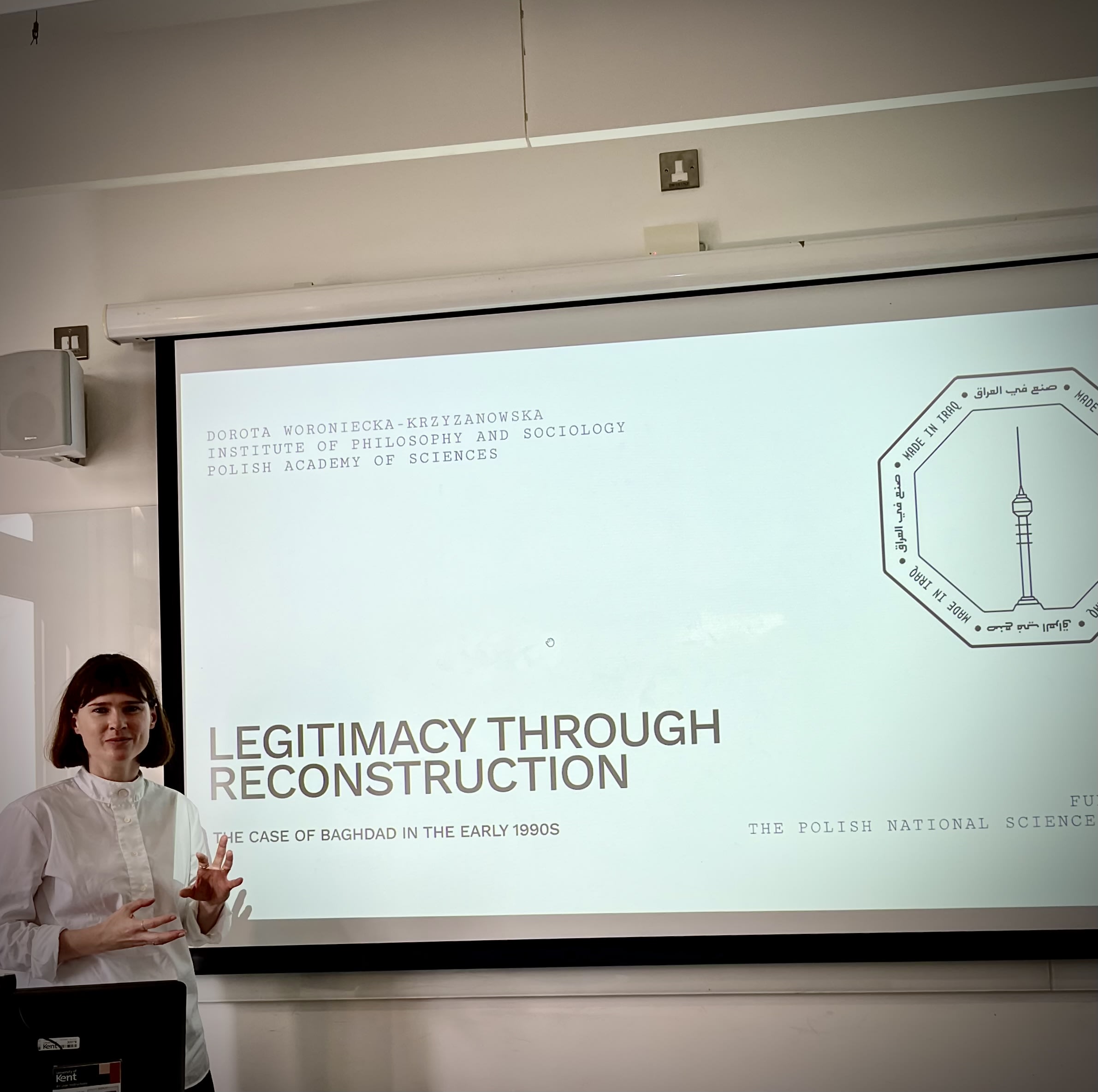 Between 17-19 September 2025, Dorota Woroniecka-Krzyzanowska participated in the 62th Annual Conference of the Conflict Research Society. The conference gathered researchers from various academic disciplines, practitioners and policymakers to explore the theme of legitimacy in conflict and peace. During the conference, Dorota presented a research paper “Legitimacy through reconstruction: The case of Baghdad in the 1990s.” Based on research conducted in the framework of “Made in Iraq” project, the paper showed complex ways in which post-Gulf War reconstruction was used to regain individual and collective agency, assert legitimacy of the Iraqi state and tighten the regime’s grip over its population.
