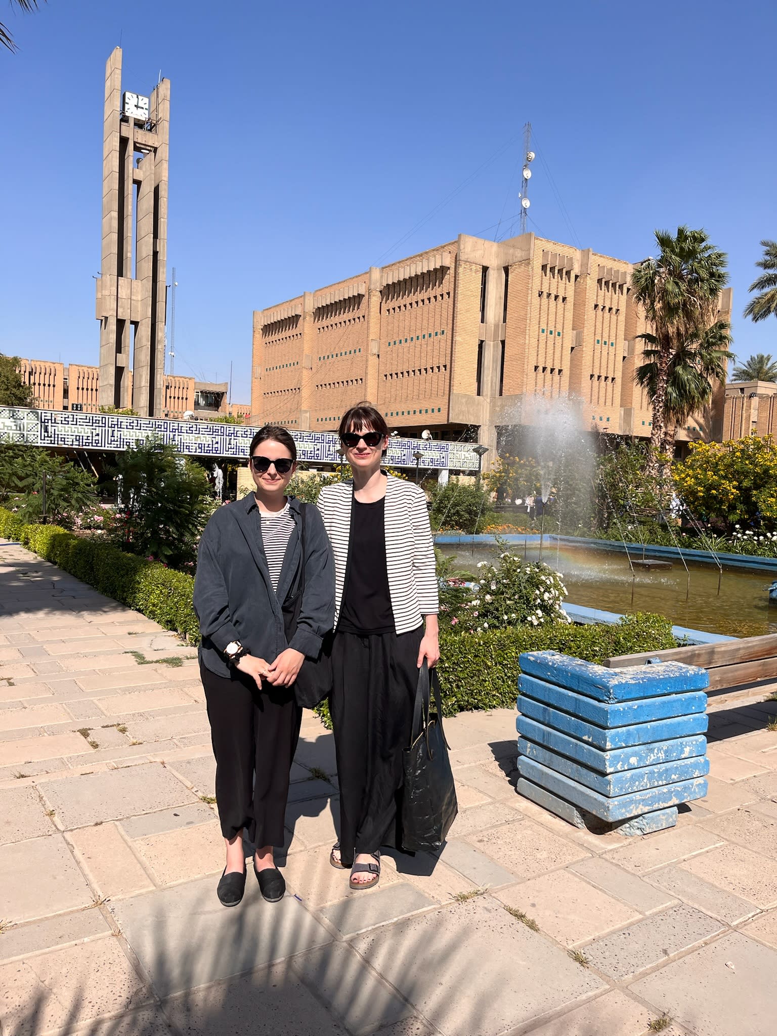 Dorota Woroniecka-Krzyzanowska and Aleksandra Wojtaszek in front of the Mustansiriyah University building, Baghdad, 2024