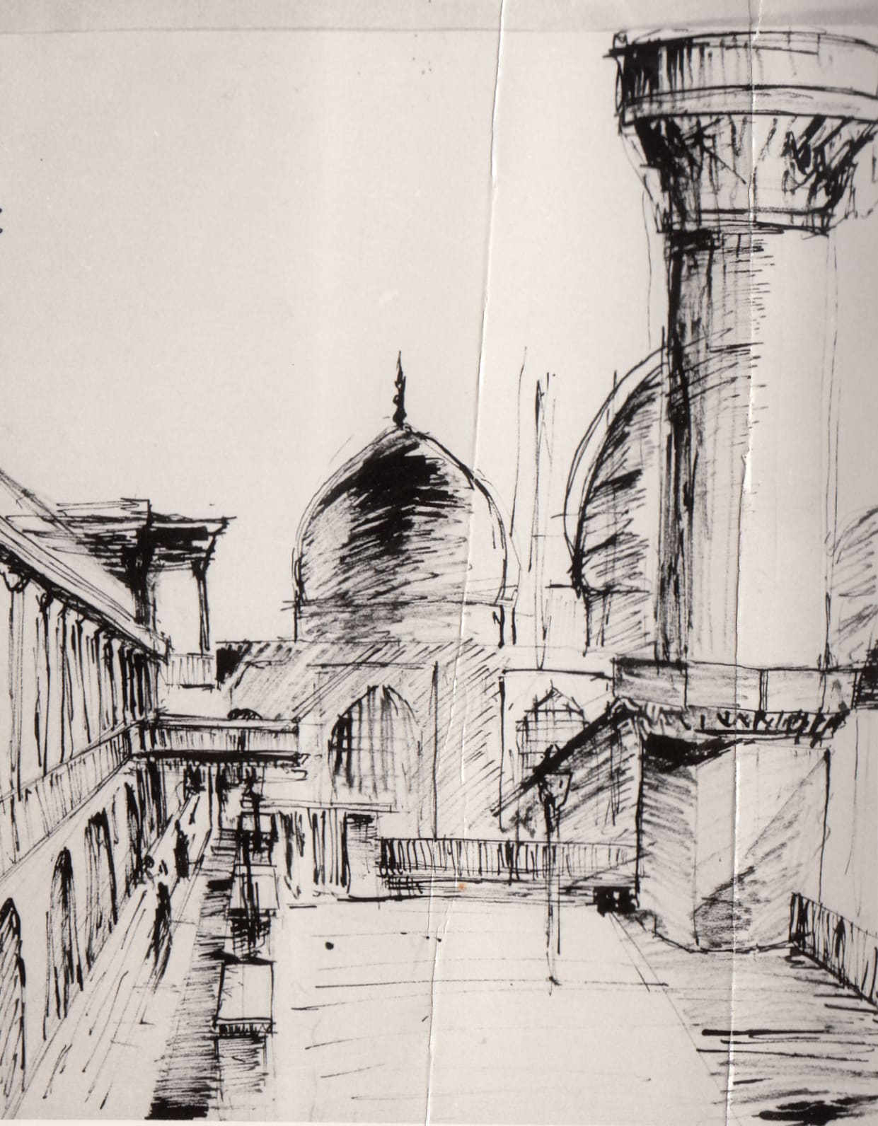 Al-Khilani Mosque, Baghdad, 1960s, sketch, (01_02_27)
