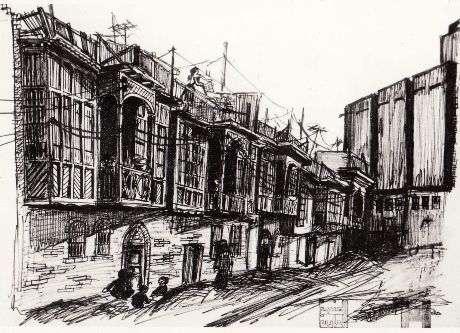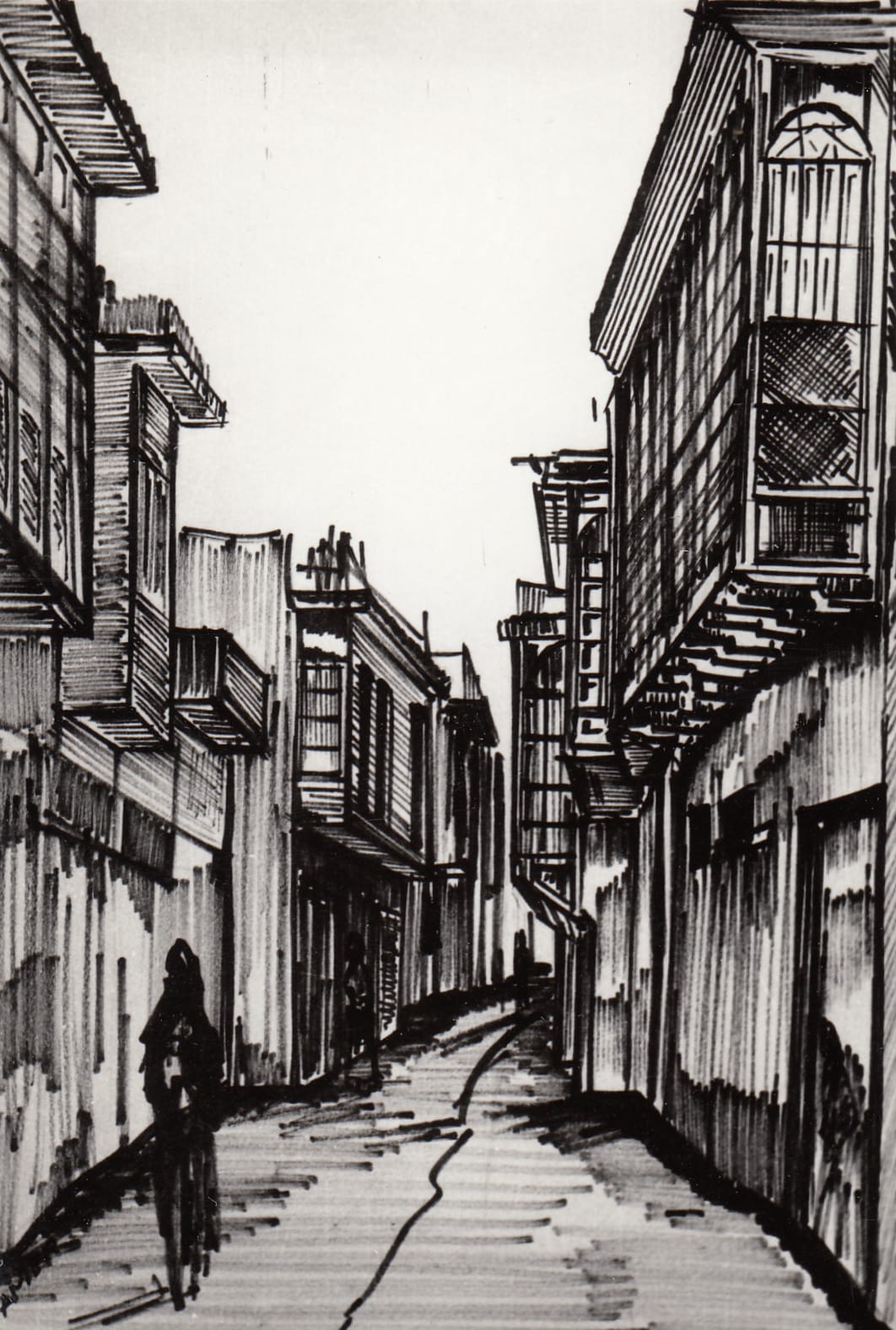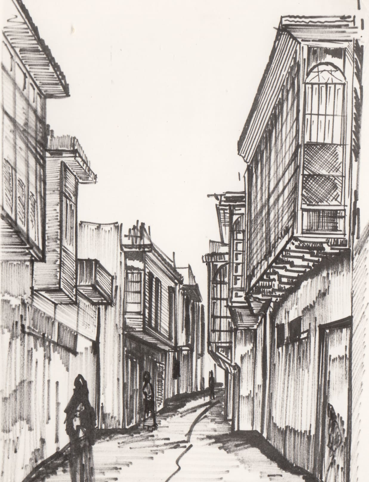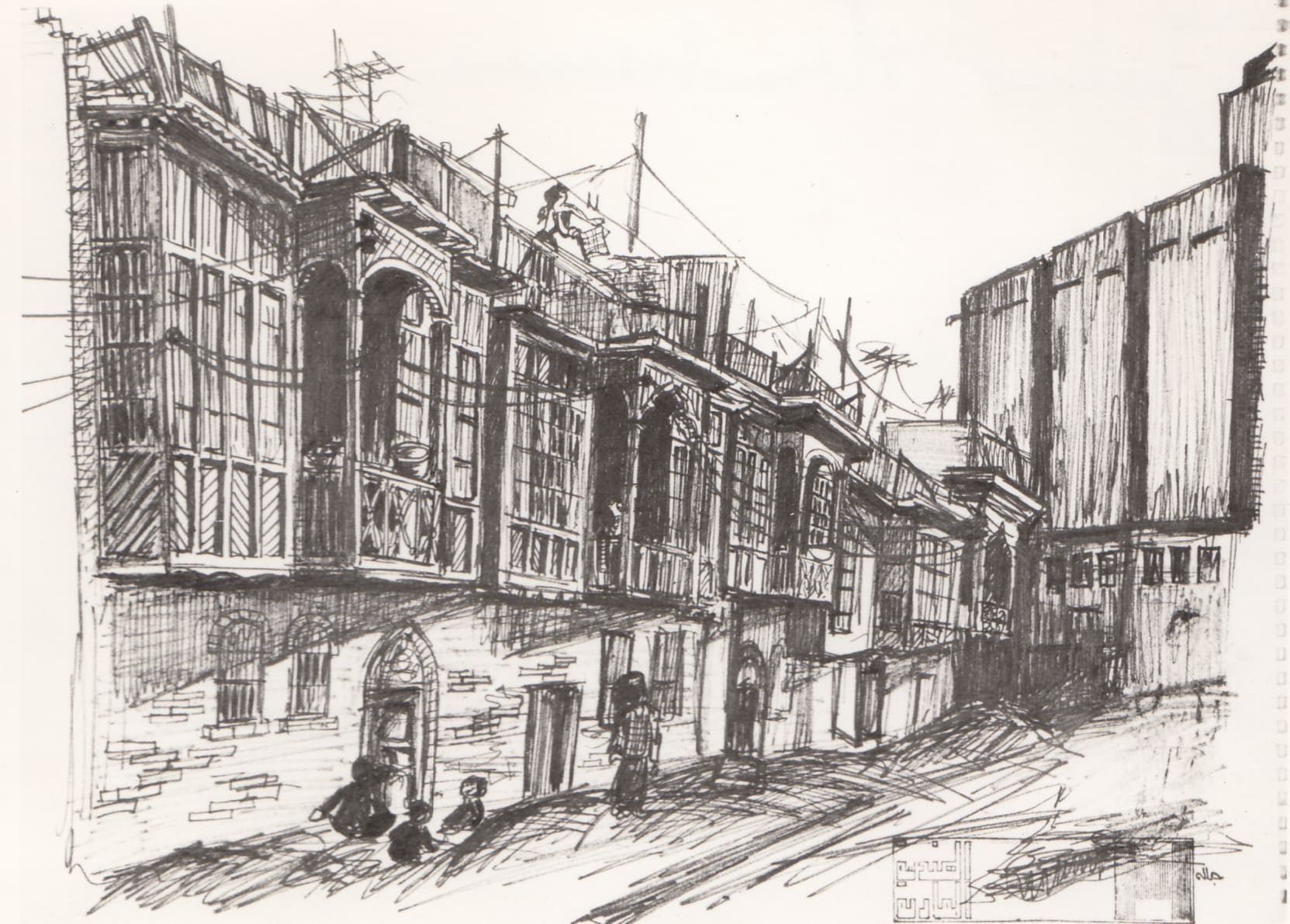 Traditional neighborhood, Baghdad, 1960s, sketch, (01_02_83)