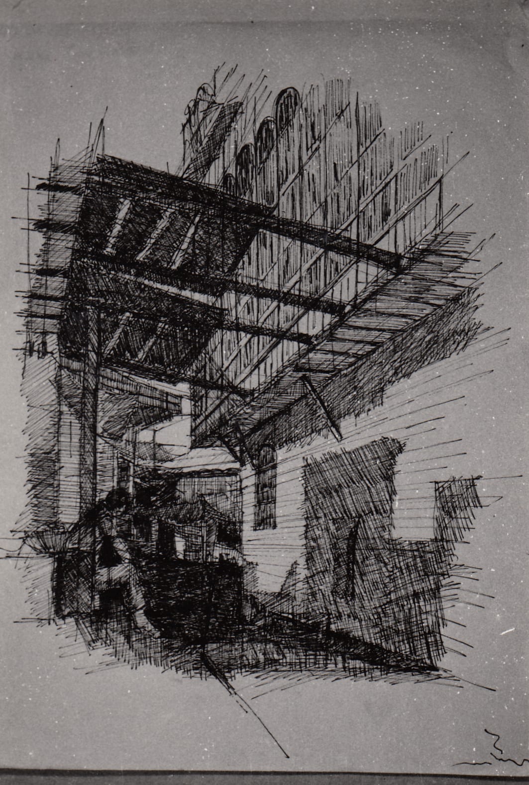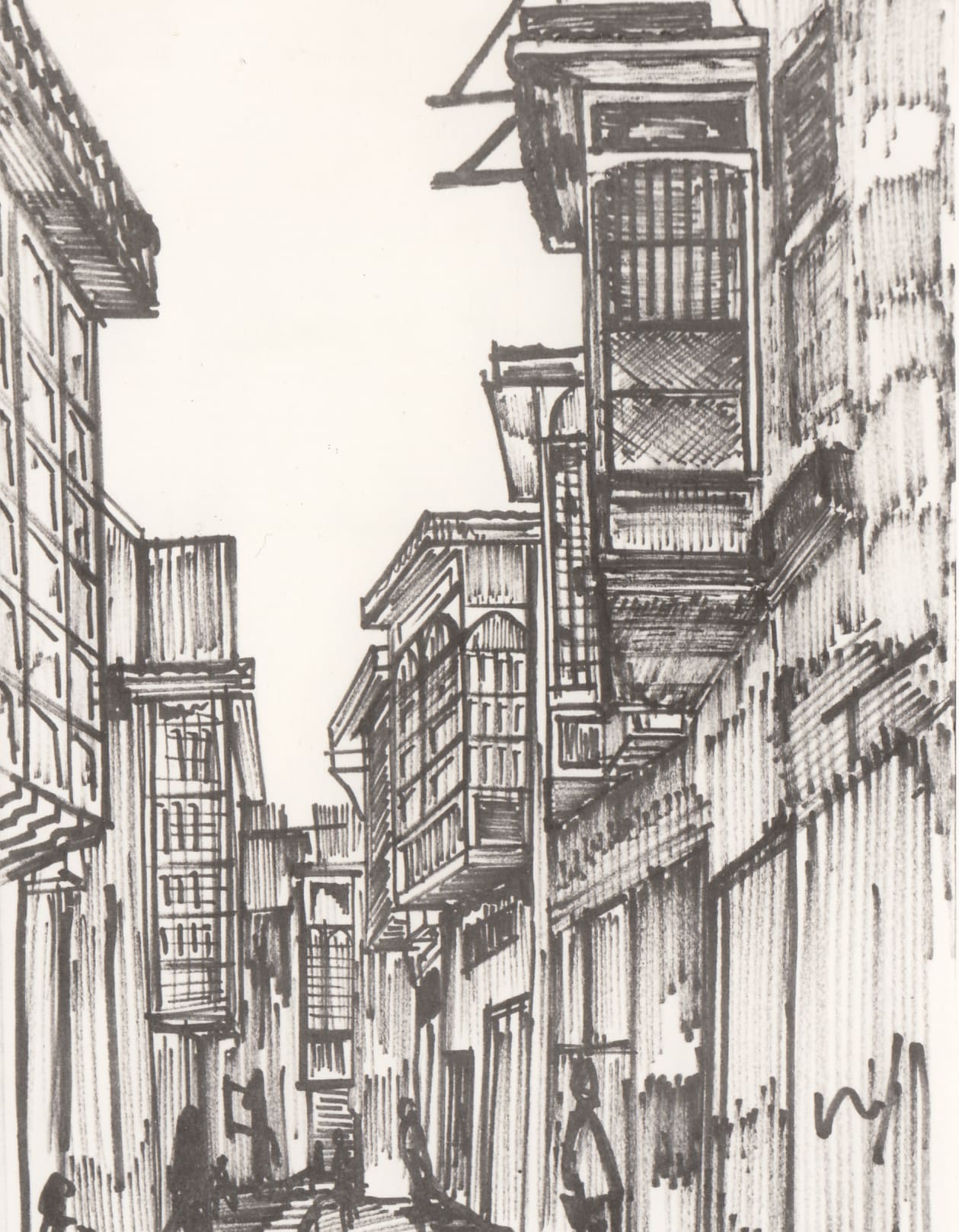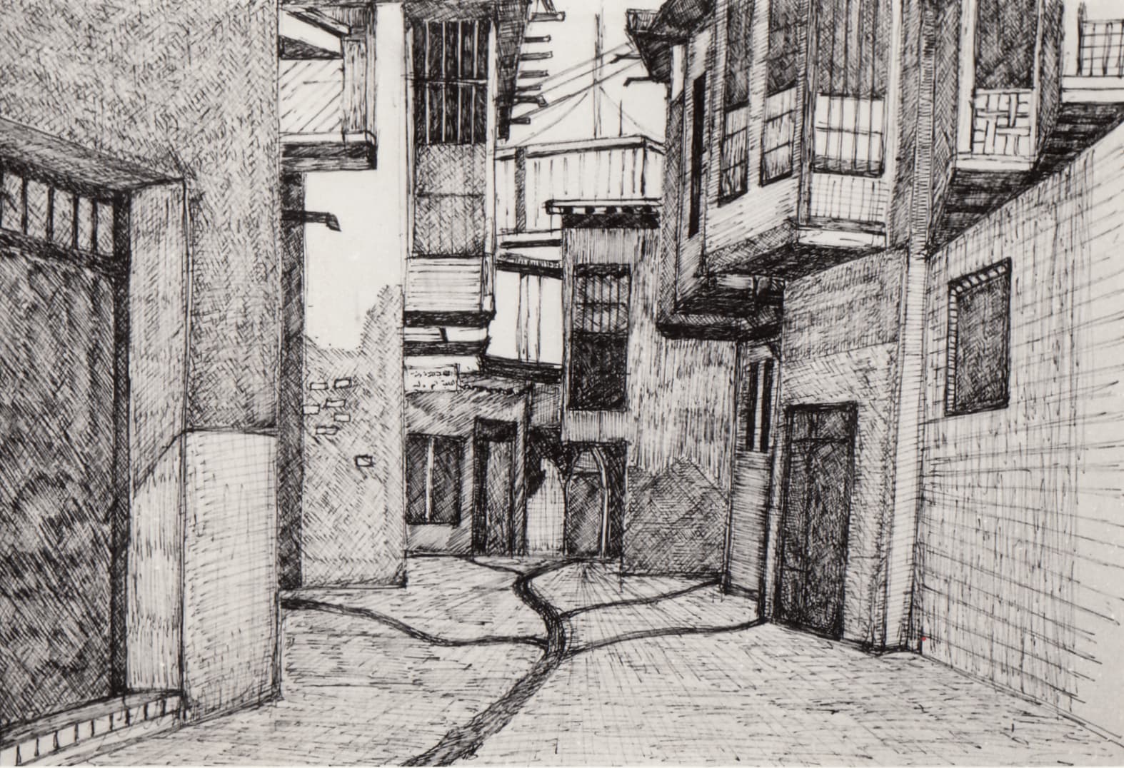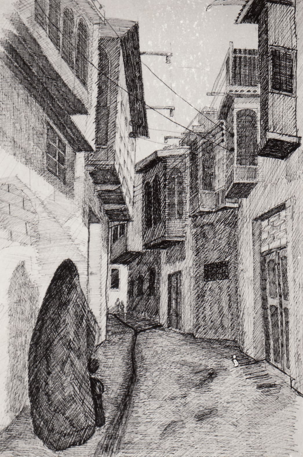 Traditional neighborhood, Baghdad, 1960s, sketch, (01_02_83)