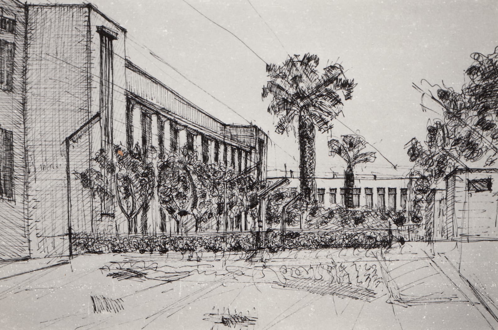 Mustansiriya School and building designed by Hisham Munir, Baghdad, 1960s, sketch, (01_02_06)
