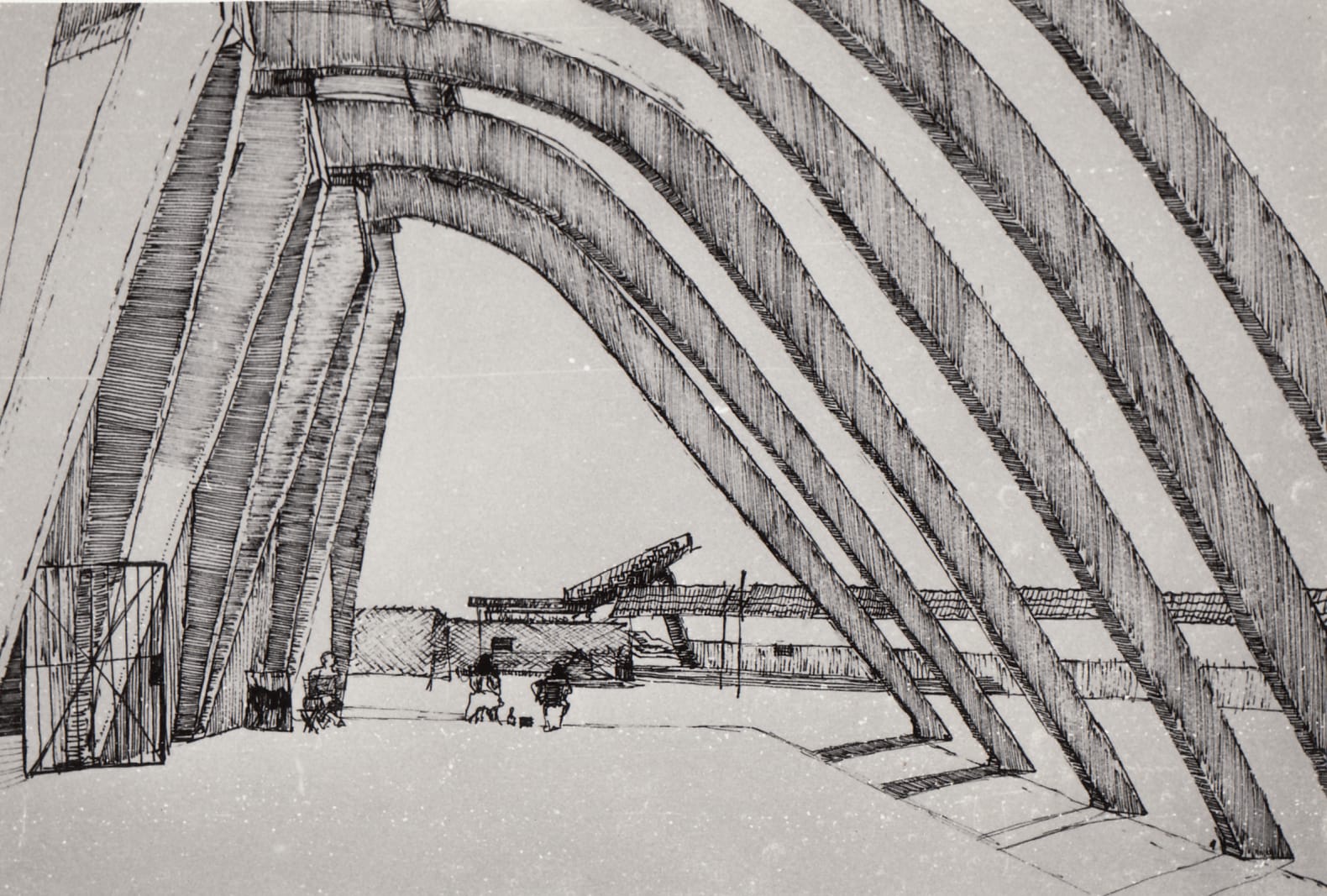 Al-Sha’ab International Stadium, Baghdad, 1960s, sketch, (01_02_86)