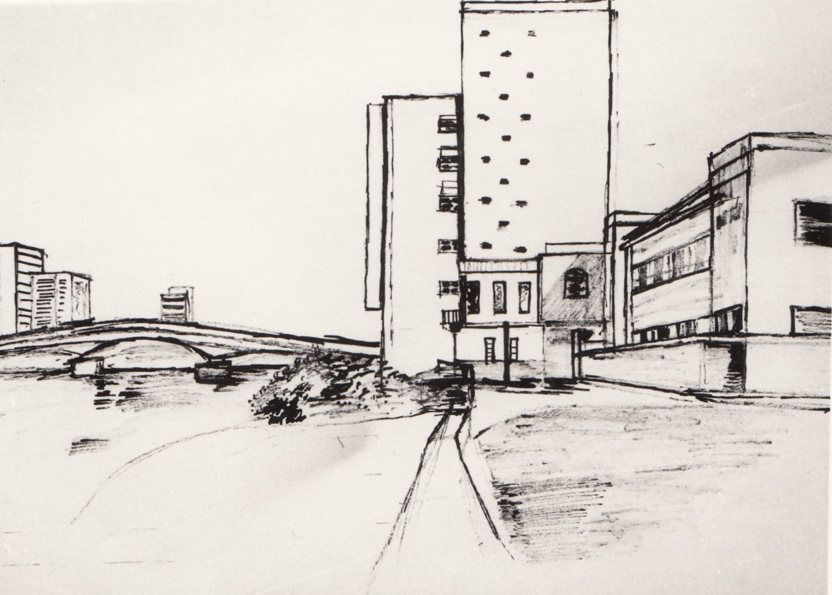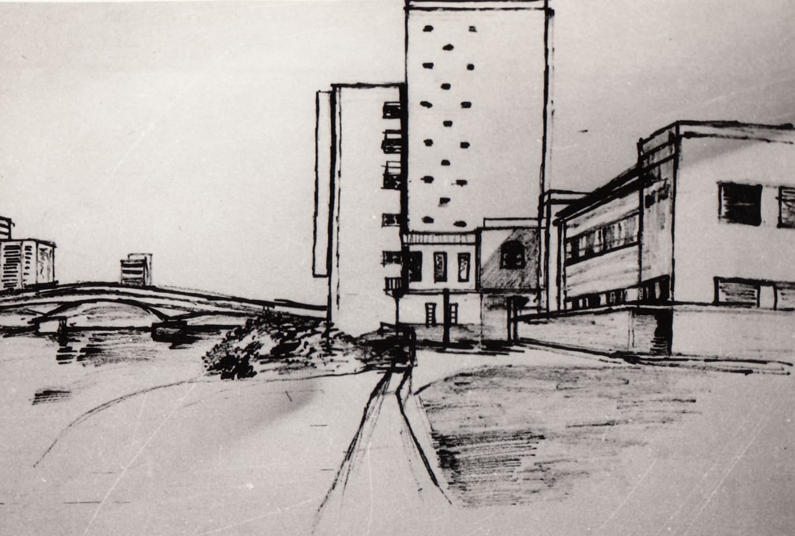 Modern residential complex, Baghdad, 1960s, sketch, (01_02_93)