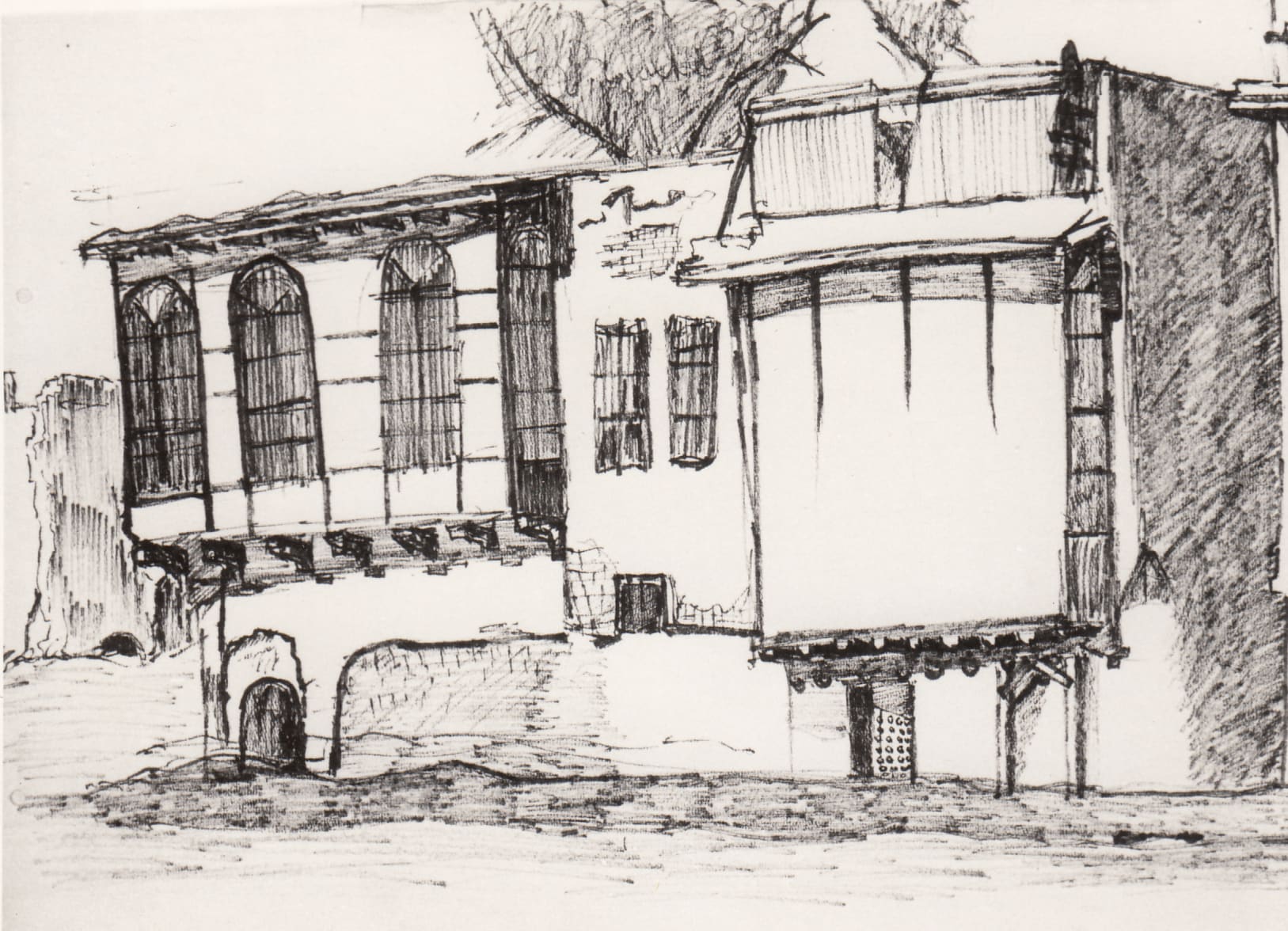 Traditional building, Baghdad, 1960s, sketch, (01_02_03)